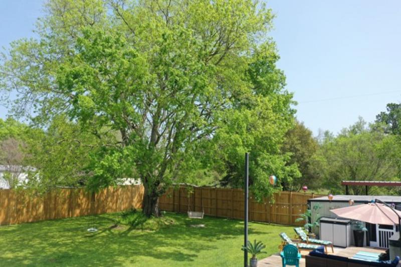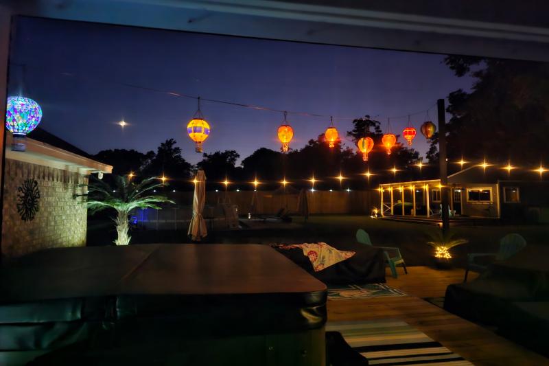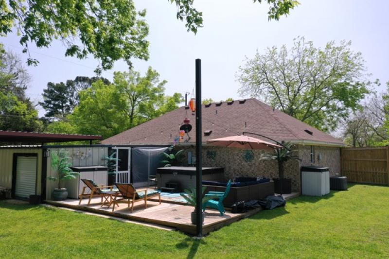 Backyard Oasis! 8ft privacy fence surrounds this fun backyard that includes a saltwater above ground pool, picture perfect 16x24 pool house with 12x24 covered porch, & hot tub on 24x23 deck with all the amenities -Bluetooth it to your phone to enjoy your favorite tunes! Pool house gives off Cool Beach Vibes with custom features & furniture divided into a living room, half bath, & kitchen sporting a concession window for serving guests at the bar! Solar Lights dot the top of the fence & string lights illuminate the yard for lovely night ambiance. Relax in the swing under the huge shade tree. Easy maintenance with the sprinkler sys & zero turn lawnmower, beautifully landscaped half acre corner lot. Enjoy rainy days in the 14x20 screened porch that makes a wonderful transition connecting backyard to home. Inside, the open floor plan flows seamlessly from the dining area to the living room. Vaulted clg adds to the open feel. Granite Kitchen with cabinet organizers & pocket door hides the pantry & combination washer & dryer. Smudge proof appliances , TVs, Furniture, Outdoor Furniture, & Zero Turn Lawnmower are all included! Fantastic primary suite, pop up ceiling, ensuite bath, shower, linen cabinet & 2 walk in closets. Hall bath with tub & shr combo. Meticulously maintained & Nice touches throughout like stained & scored concrete floors, Nest Thermostat, hardware upgrades, new toilets, & front door to name a few. Two car carport on slab with sidewalk leading to the front door, along a decorated flower bed that is sure to please. All the comforts of home with outdoor entertaining at its best!